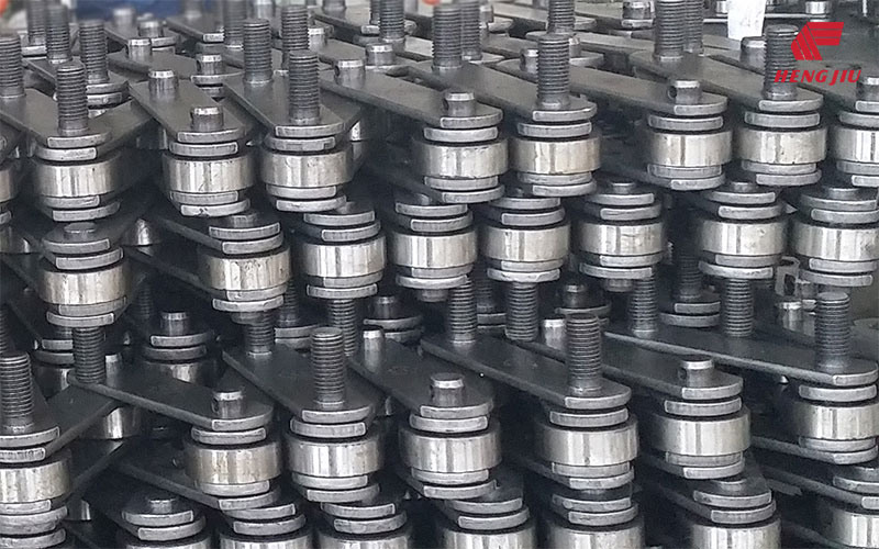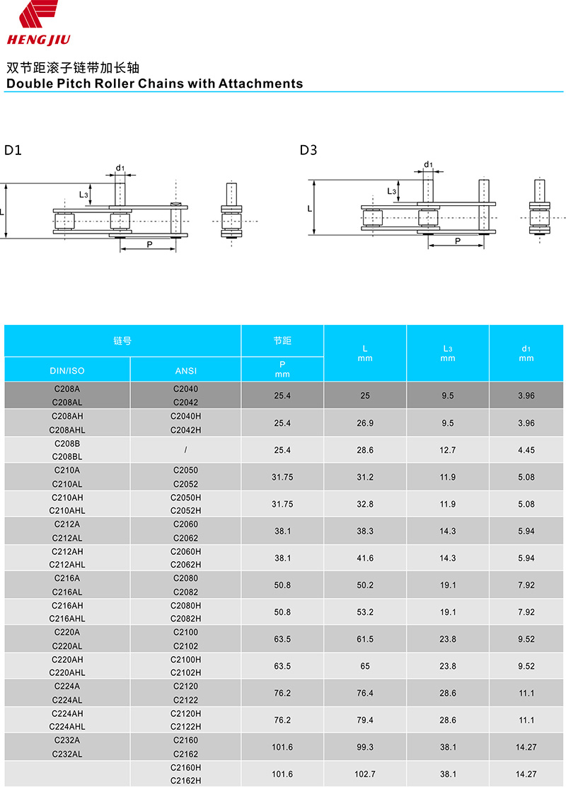 双节距滚子链是由短节距滚子链派生出来的,它的节距是后者的一倍,其它结构形式与零件尺寸相同。与短节距精密滚子链相比,它是一种轻型链条,适用于传递功率小,速度较低,传动中心距离更长的场合。
