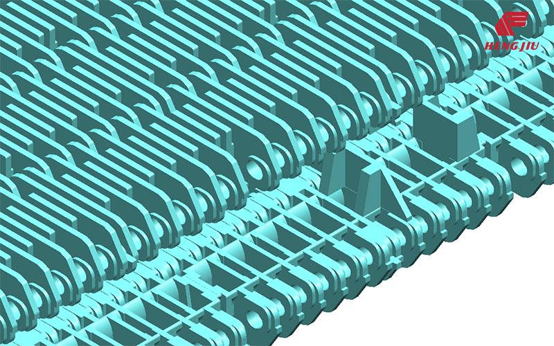 平顶链网/顶部封闭如果产品因其易损性及不稳定性而要求有最大的支撑能力时,并且存在一些会卡在链网表面并有可能损坏或堵塞产品,或链网的小颗粒如玻璃碎片、螺栓和螺母或产品本身时,通常会采用完全闭合的表面设计方式。