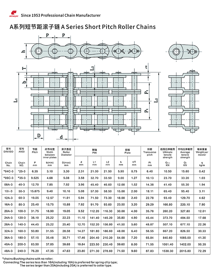 天美传媒集团的短节距滚子链以其高强度和耐疲劳著称,尺寸完全遵循ANSI、ISO和BS标准,可组装成单排、双排和多排,以适用所传动的功率和不同的配置空间。