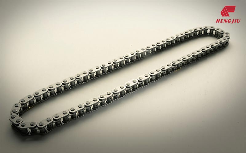 齿形链零件采用优质合金钢材料制造,链板类零件采用精密冲挤工艺成形,等温淬火工艺处理,获得高的硬度、强度和冲击韧性。销轴表面超高硬化处理,具有良好的抗磨损性能。根据链条啮合理论计算并反复验证、修证所形成的链板齿与链轮实现完美的啮合,不仅体现出坚固可靠、适应长时间高速、轻量化等特点,且在高速运转下得到优越的低音效果。