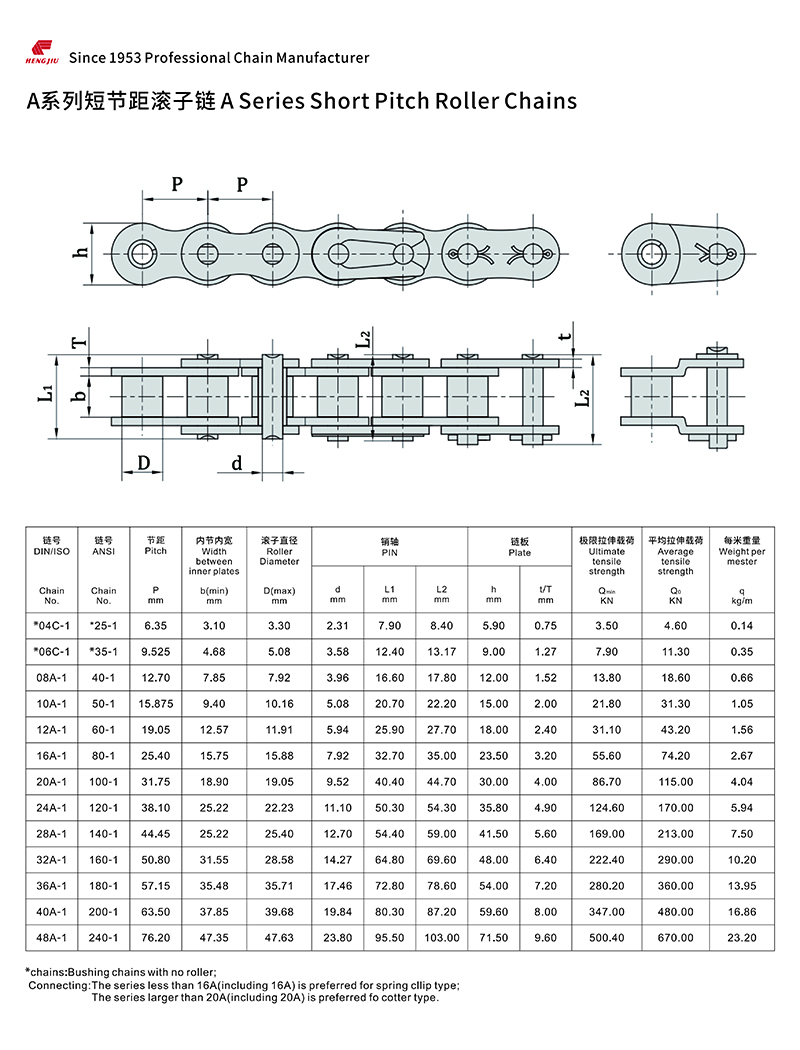天美传媒集团的短节距滚子链以其高强度和耐疲劳著称,尺寸完全遵循ANSI、ISO和BS标准,可组装成单排、双排和多排,以适用所传动的功率和不同的配置空间。