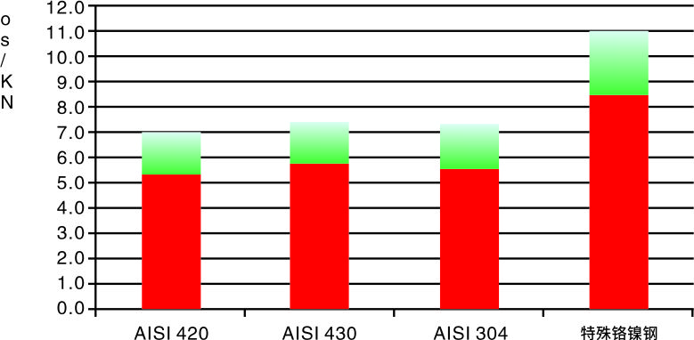 不同材料链板的表面硬度范围(绿色区)如下图表。